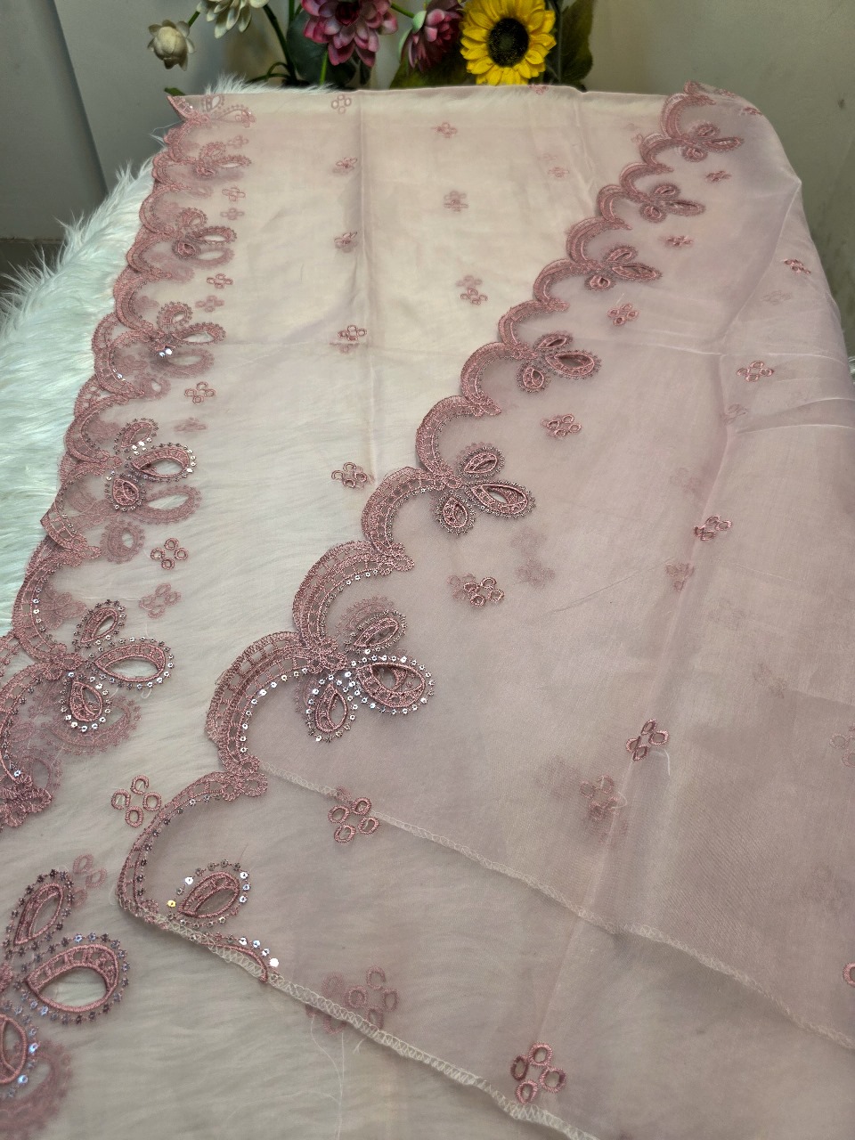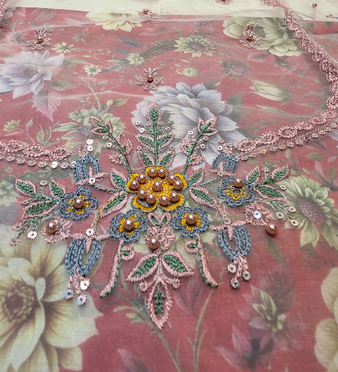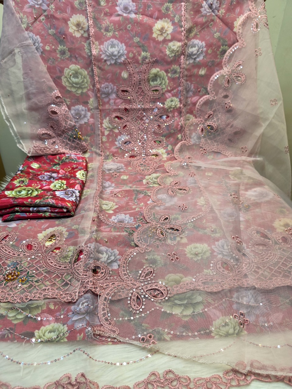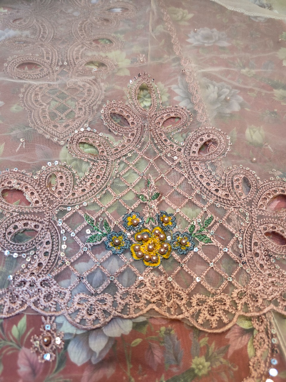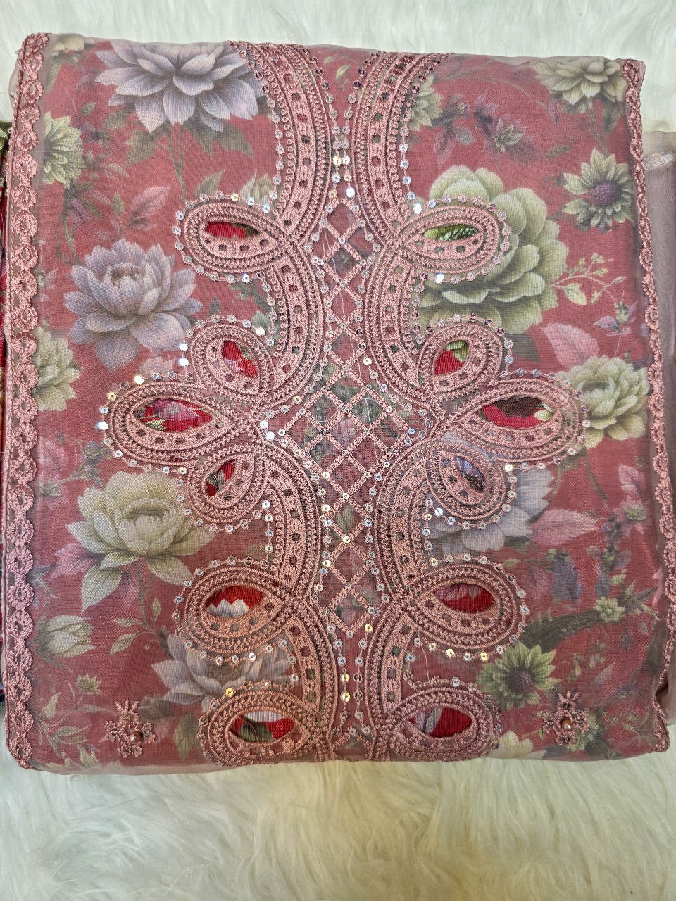 ★ Indian Sada Bahar fabric with Chikankari embroidery & cutwork finish
