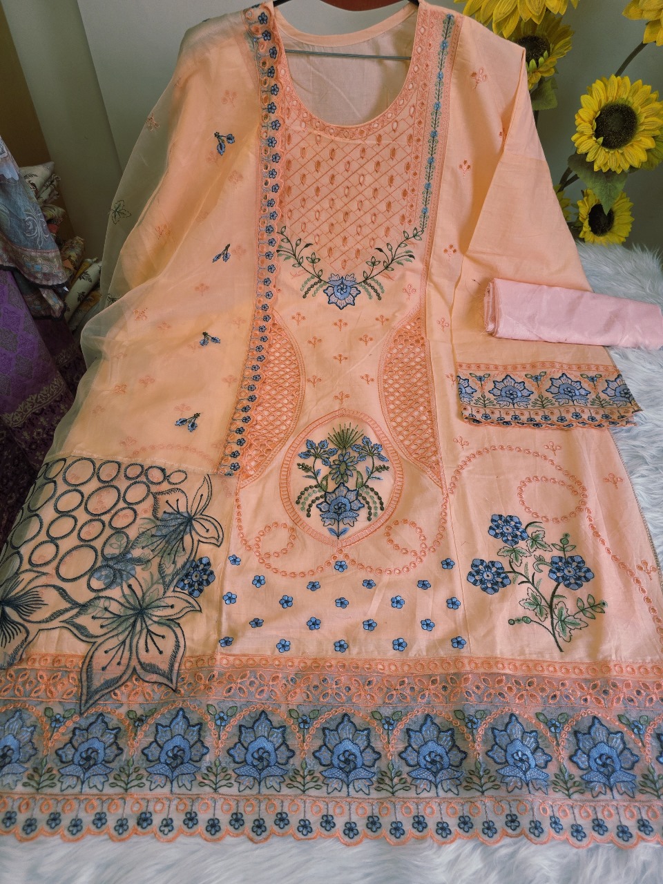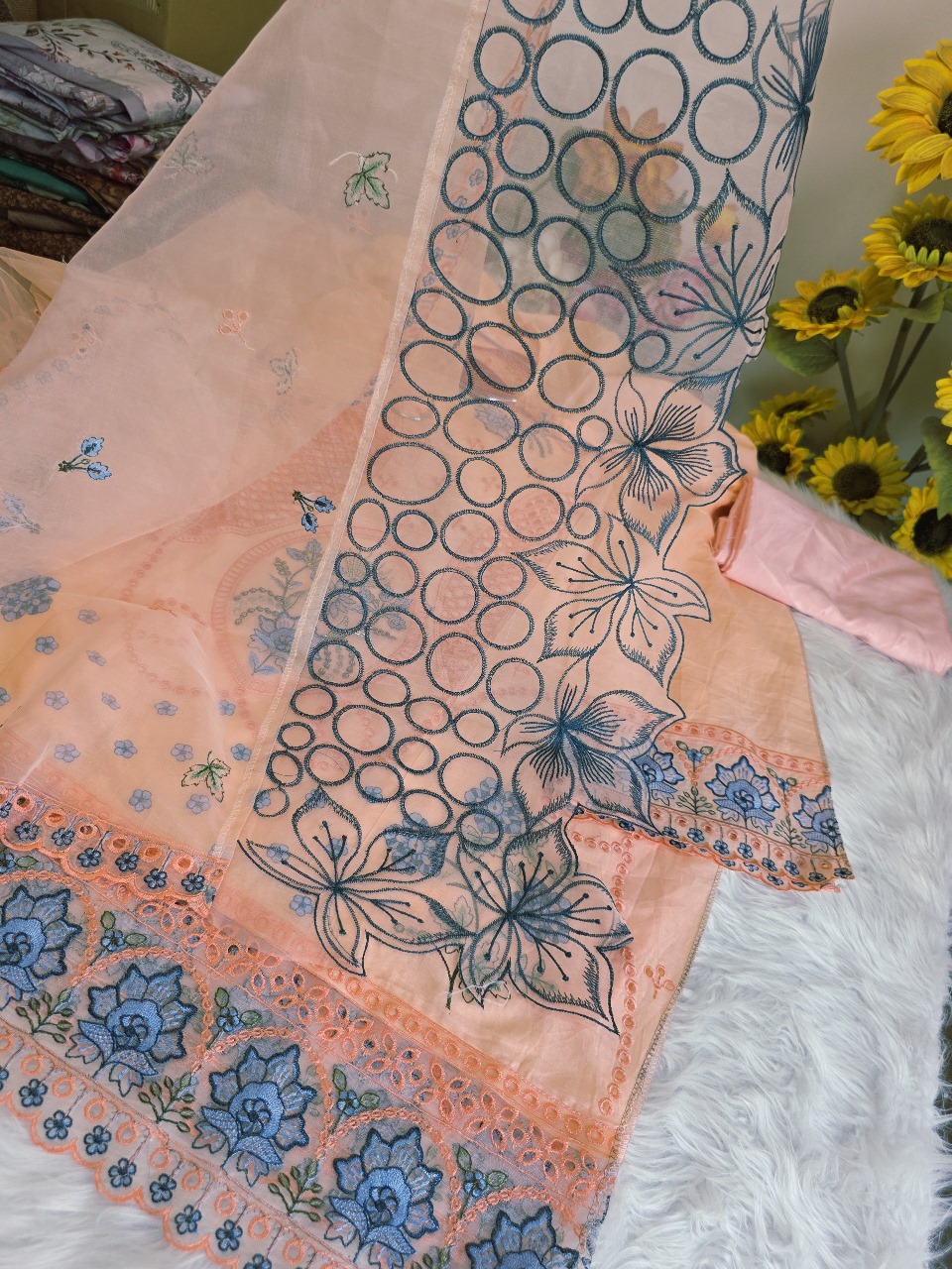 ✅ Orna (Dupatta): Crafted from Organza fabric with digital prints, beautifully finished with Indian lace on both sides.