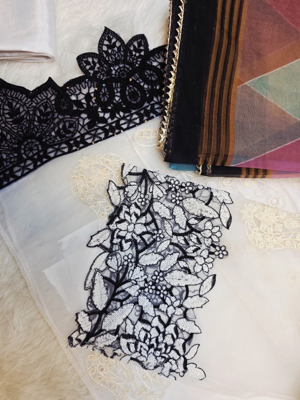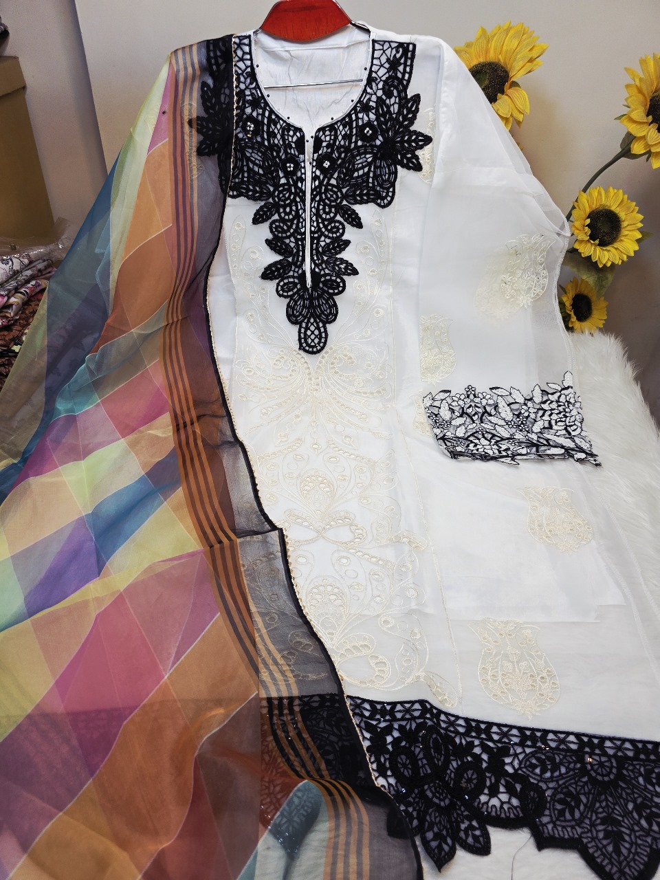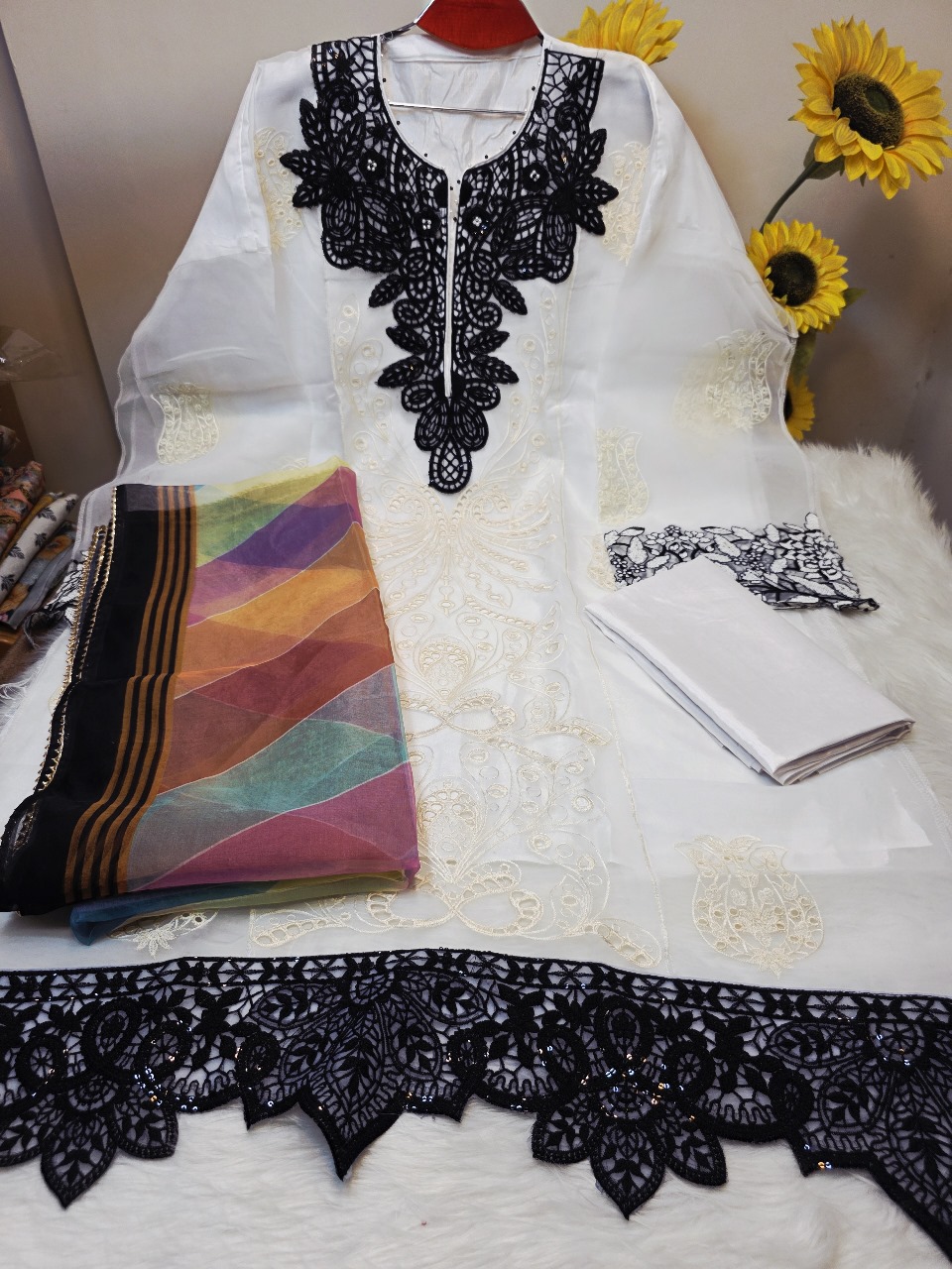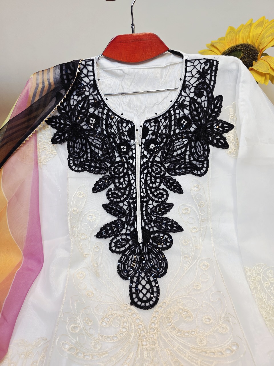 ✅ Orna (Dupatta): Crafted from Organza fabric with digital prints, beautifully finished with Indian lace on both sides.