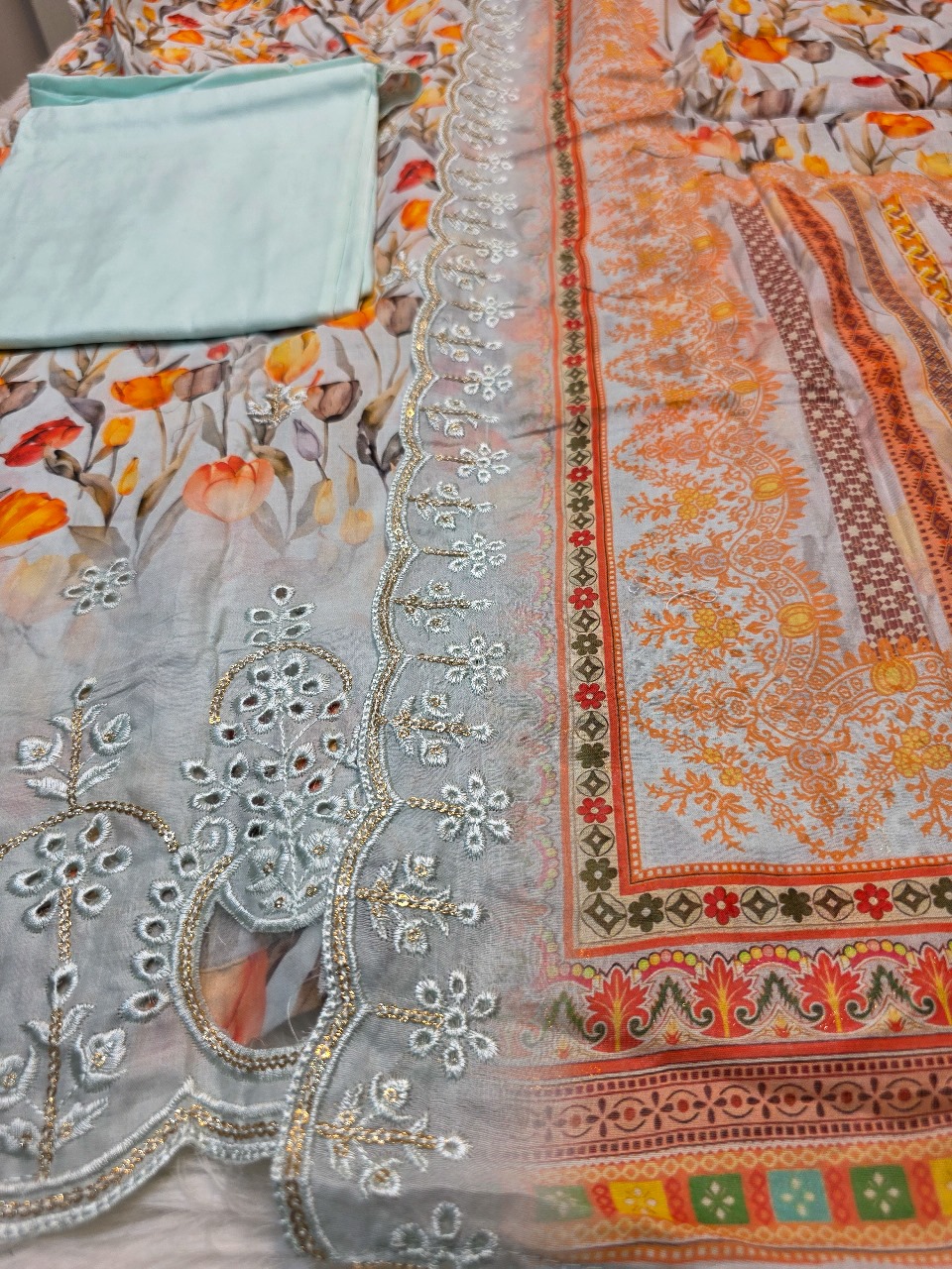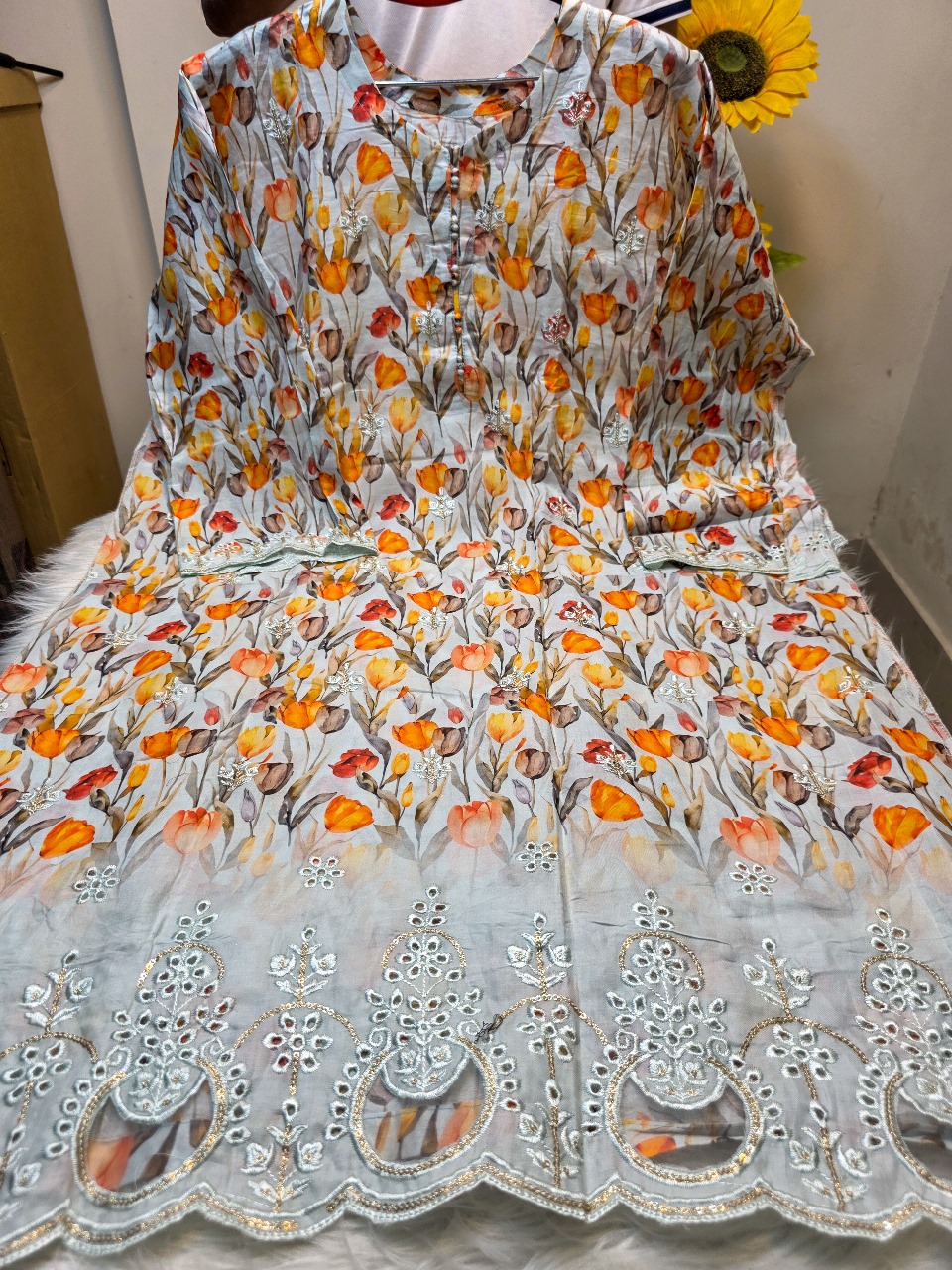 - Floral digital print with beautiful boring work, cutwork embroidery & sequence design