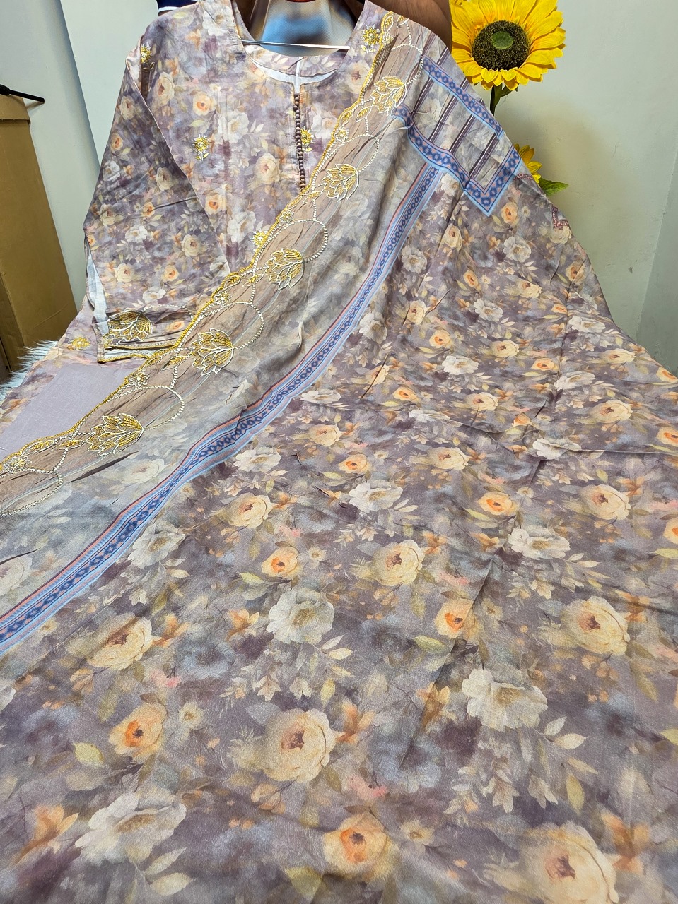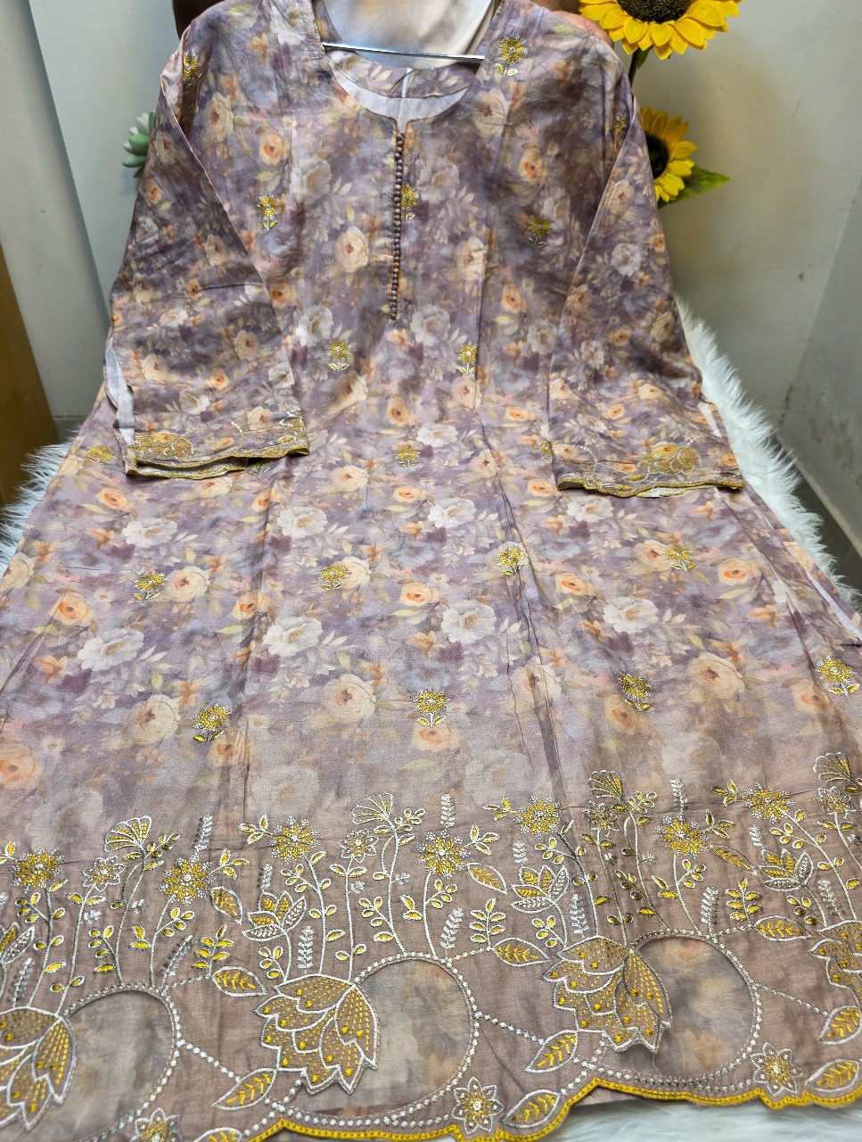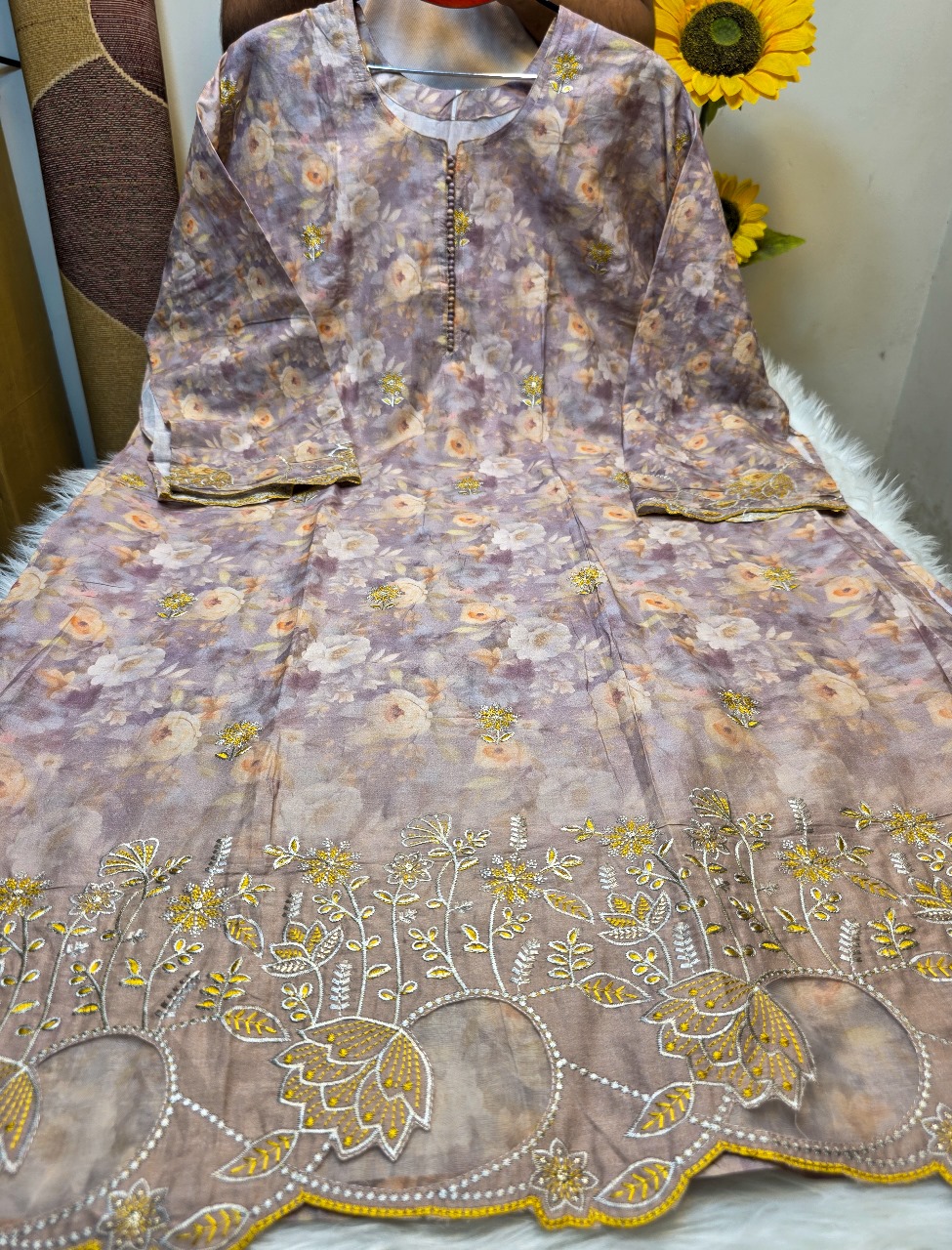 - Floral digital print with beautiful boring work, cutwork embroidery & sequence design