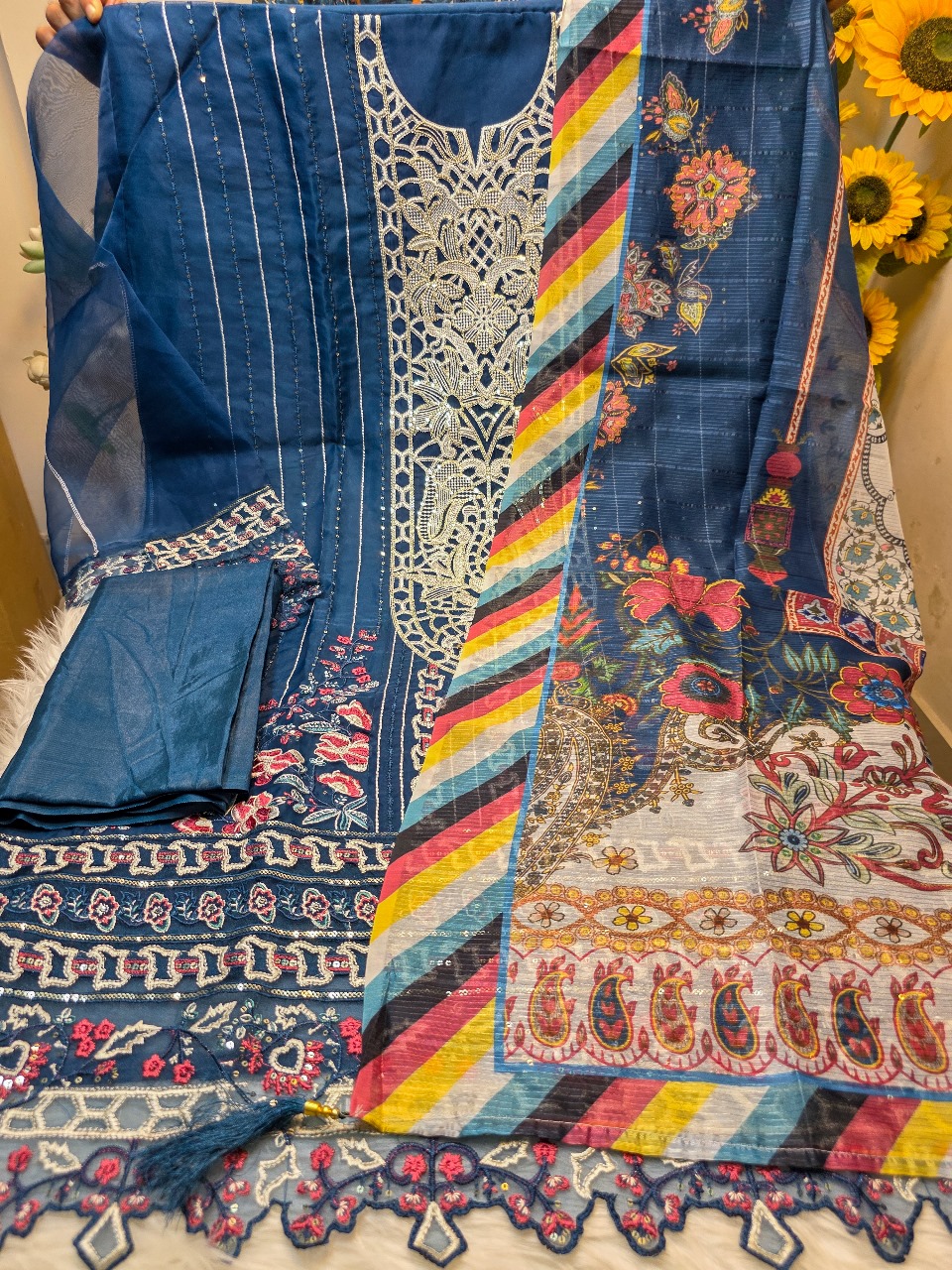 ★ Dress exclusive Sada Bahar with heavy embroidery work & sequence, Lesser Cutting.