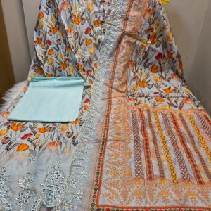 ★ Orna: Indian Sada Bahar with digital print & Chikenkari embroidery work.