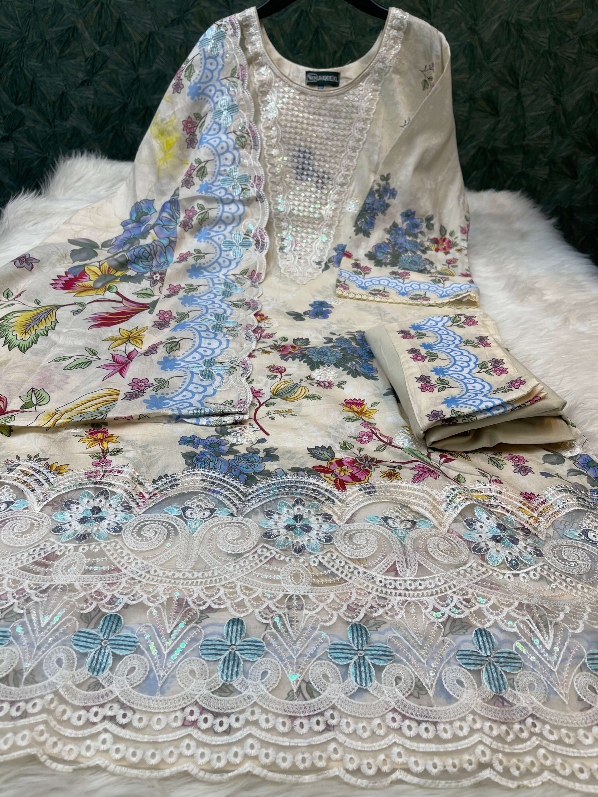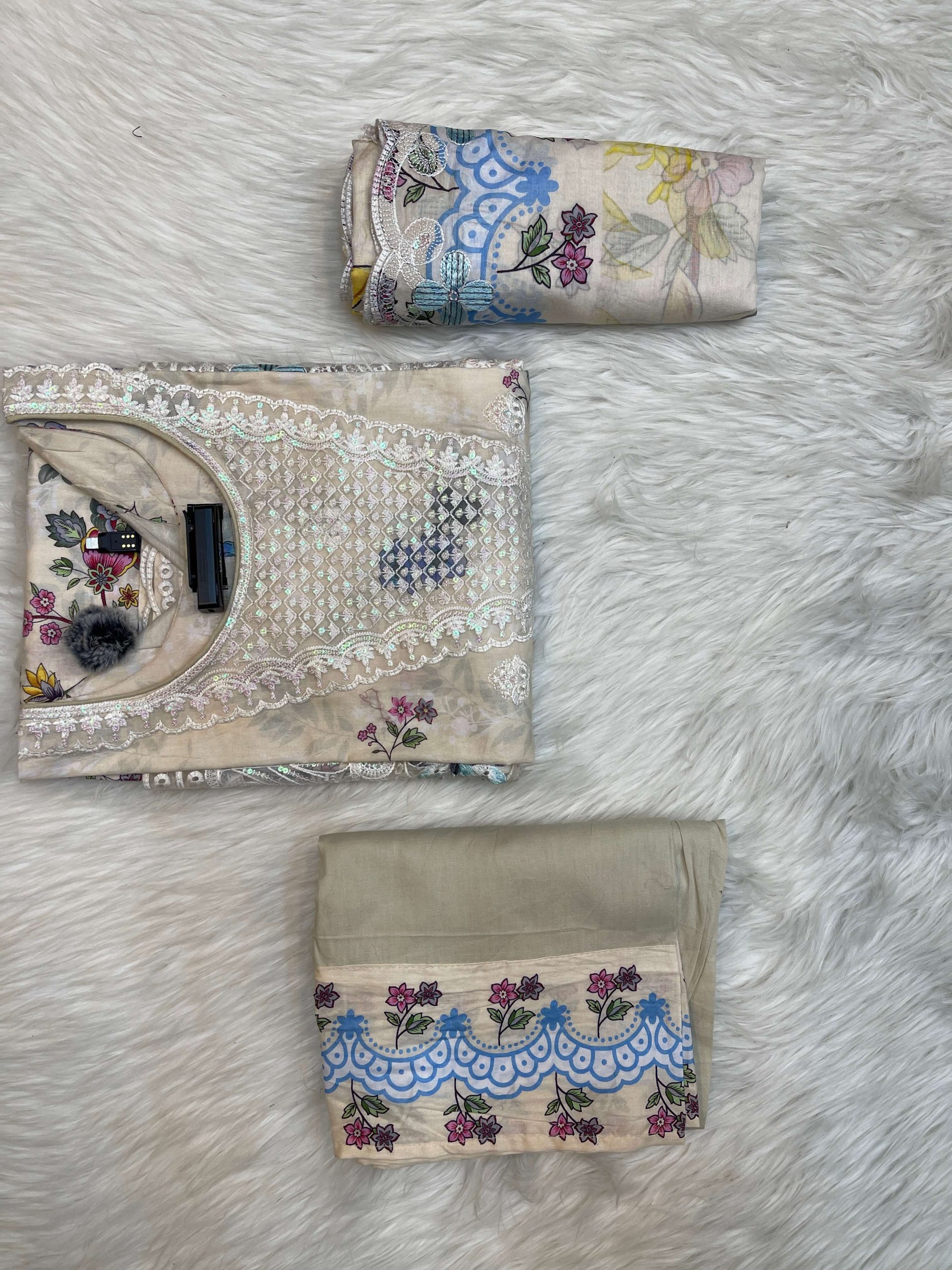 ★ Orna: Exclusive Cotton with digital print & Side Embroidery.